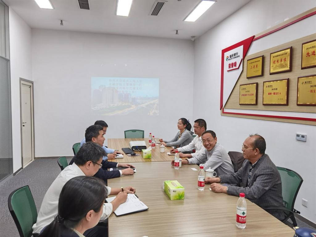 11月16日下午,beat365英国官网网站党委书记、副院长王建明、校友分会会长刁孝华教授、专业教师代表樊国昌教授和梅德祥副教授、校友会秘书长杨佳妮老师一行走访了重庆银行,受到1997级货币银行学校友、重庆银行巴南支行行长王翔的热情接待。