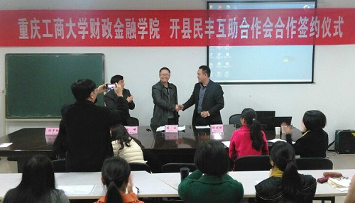 会上,钱峰会长向与会人员介绍了互助合作会发展历史,并结合当下的社会形势,具体分析了互助合作会在社会中所扮演的重要角色——以服务贫困农户,发展山区经济为宗旨,采取工作到村社,收款放款到院坝,技术培训到农户,跟踪服务到项目的方式,为缺乏生产技术的贫困农户提供启动资金,开发生产项目。财政beat365英国官网网站常务副院长莫云代表学院与开县民丰互助合作会达成战略合作协议,共建beat365英国官网网站小额金融科研实训基地。他表示,此次签约仪式的顺利举行,为同学们了解基层信贷民情,强化专业知识和技能,拓宽就业面提供了重要平台,并希望双方能建立起长期合作交流的友好关系。
