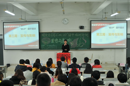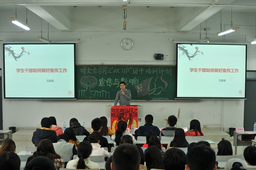 本期团干培训的主题是“宣传与影响”。大会伊始,范星星老师就“高校新闻为何突出”、“高校新闻的发生和传播过程”等问题进行了详尽的讲解,语言风趣幽默,内容通俗易懂,加深了大家对高校新闻的理解。对于学生干部如何进行新闻写作,范老师认为,应在学习的基础上追求创新改革,同时注意品牌意识的培养。随后,兰丽娟老师也提出了自己的一些见解和对学生干部的期望,她表示,随着时代变化,大家可以适当改变风格,为新闻写作注入新的血液。