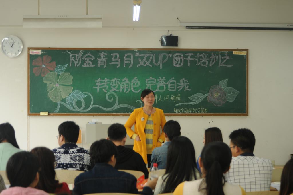 ,财政beat365英国官网网站于07212教室举行了以“转变角色,完善自我”为主题的财金青马月之“双UP”团干培训。此次培训会由分团委书记兰丽娟老师召开,财金学生会各部门部长参加培训。