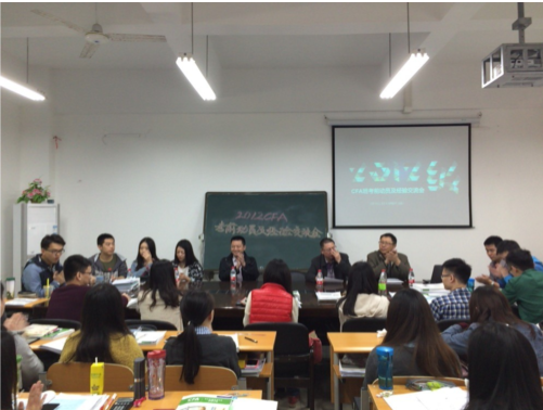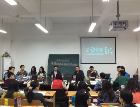 2015年4月14日,财金学院2012级CFA特色班在田家炳书院313会议室隆重召开了“CFA资格证考试考前动员和经验交流会”。财金学院党总支杨萍书记、常务副院长莫云院长、毛跃一副院长、党总支刘代成副书记以及辅导员文理老师出席了本次动员会。此次动员及学习经验交流会还特别邀请了11级CFA班的杨光、唐玥和袁嘉渝三位优秀的学长、学姐跟同学们进行交流与经验分享。
