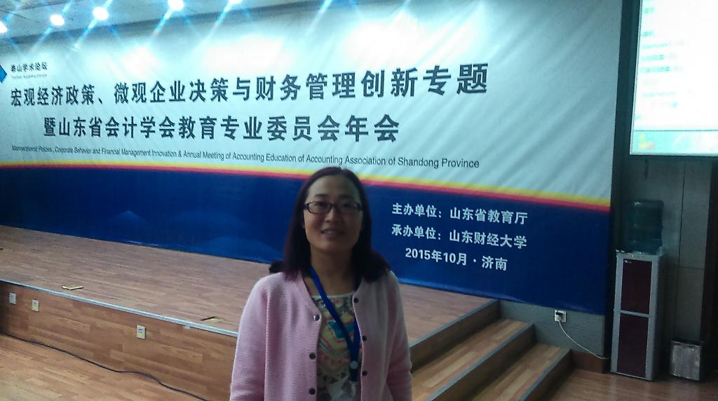 10月24日-25日在济南举办了以“宏观经济政策、微观企业决策与财务管理创新”主题的泰山学术论坛暨山东省会计学会会计教育专业委员会2015年年会。2015年10月24日上午由中国人民大学王化成、上海财经大学靳庆鲁等知名学者做了大会专题报告。2015年10月24日下午,各院校专家学者在“公司财务与国企改革”、“公司治理与公司财务”、“宏观环境、公司财务与会计”、“会计教育教学”四个分会场展开了专题研讨。beat365官网王雪梅老师提交的大会论文:“直接股权结构、终极股权结构对公司价值的影响”参与了讨论。2015年10月25日泰山学者曹廷求、中国人民大学叶康涛、暨南大学饶品贵等学者做了大会主题报告。