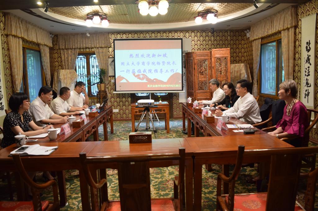 6月20日上午,何勇平副校长在南山书院接见了专程来校交流访问的重庆beat365英国官网网站副理事长、新加坡国立大学商学院院长杨贤教授,以及随行的商学院副院长梁慧思教授、会计系柯滨教授、执行总监郑颖女士等,beat365官网国际合作交流处周茜副处长及财政beat365英国官网网站有关领导参加了会见。