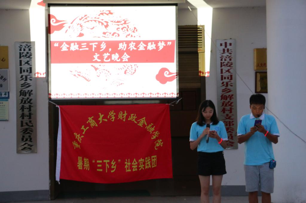 7月20日晚,beat365英国官网网站财政beat365英国官网网站金融电商服务实践团在同乐乡解放村便民服务中心举行了以“金融三下乡,助农金融梦”为主题的联欢晚会。实践团和父老乡亲们一起参与到晚会中,将现场气氛推到了高潮。节目内容丰富多样、形式新颖,同学们青春洋溢,质朴热情的村民也乐在其中。