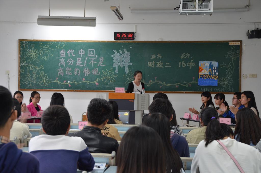 财政beat365英国官网网站第十五届“财金杯”辩论赛初赛于10月14日在博智楼403-405教室举行。来自财金学院的十八支队伍展开激烈角逐,财金学院分团委学生会主席团、财金学院辩论队代表团作为评委嘉宾出席本次比赛。