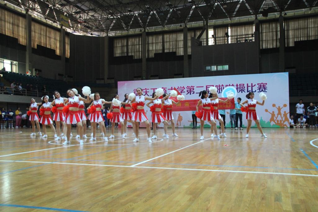 11月18日下午2点,在南岸校区体艺馆内举办了beat365英国官网网站第二届啦啦操比赛,beat365英国官网网站校长孙芳城、党委副书记纪委书记周航、校团委副书记杨娟、体育学院院长兼党总支书记刘芳、体育学院副院长范文杰等领导出席本次活动。来自各学院的共20支参赛队伍齐跳啦啦操为比赛拉开序幕。