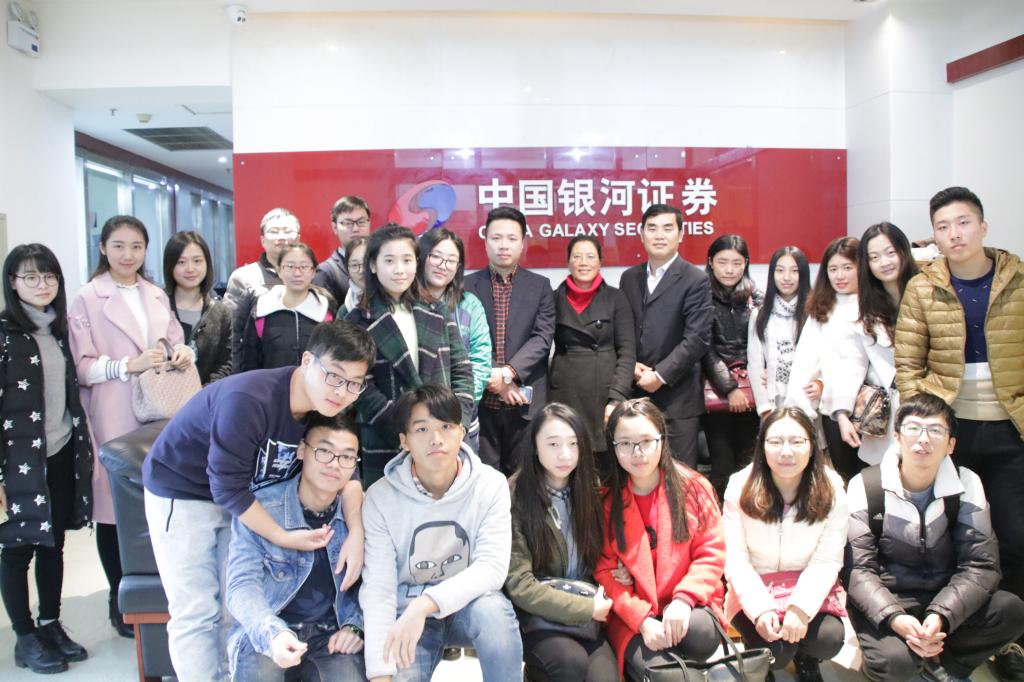 同学们在总经理唐贺之、渠道经理付为可引领下,首先参观了中国银河证券股份有限公司。随后,在公司会议室,与银河证券营业部总经理唐贺之、渠道经理付为可进行交流学习。首先,唐贺之总经理为我们介绍了中国银行证券股份有限公司的公司概况,发展历史。中国银河证券股份有限公司是经国务院批准,在收购原中国银河证券有限责任公司的证券经纪业务、投行业务及相关资产的基础上,由中国银河金融控股有限责任公司作为主发起人,联合北京清源德丰创业投资有限公司、重庆水务集团股份有限公司、中国通用技术控股有限责任公司、中国建材股份有限公司4家国内投资者,于2007年共同发起设立的全国性综合类证券公司。公司的经营范围包括:证券经纪,证券投资咨询,证券资产管理,融资融券,以及中国证监会批准的其他业务。中国银河证券在“2016中国企业500强”中排名第481位,在中国同类公司中排名前三。