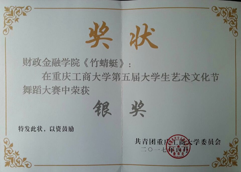 舞动校园展风采,财金学院在舞蹈大赛中一路过关斩将,在决赛现场完美演绎了舞蹈《竹蜻蜓》。时而柔美,时而浪漫;队员们以优美的姿态和精彩的表演赢得观众的阵阵掌声,荣获银奖。