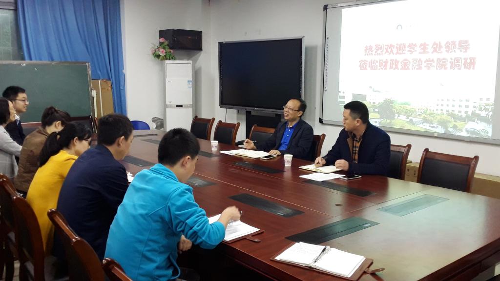 为进一步了解学院学生工作以及辅导员工作的开展情况,提升辅导员的工作积极性和责任心,2017年4月27日上午10时许,党委学工部部长、学生处处长石世明,副部长、副处长刘代成来到财金学院办公室开展学生工作专题调研。财金学院党委副书记黄谦及全体院系辅导员参加了本次座谈会。