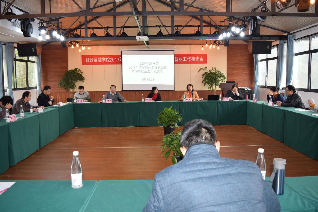 学院党政领导、各系主任、毕业班辅导员及教师代表参加了此次会议,会议议程共有八项。一是主持人黄谦副书记介绍了来自保险业、银行业的参会嘉宾;二是杨萍书记及兰丽娟老师代表学院总结了2017年就业业工作;三是表彰2017届毕业生工作先进集体和个人。根据财金学院【2015】02号文件精神及2017年6月14日学院党政联席会议纪要,经过学院学团办初次评选和学院毕业生就业工作领导小组联评,12月6日,学院党政联席会和院务会集体商议,决定授予财税系等4个系为“财政beat365英国官网网站毕业生就业工作先进集体”;授予白玉等9位同志为“财政beat365英国官网网站毕业生就业工作先进个人”。四是系主任代表尚可文教授发言。他提出要做好学生的就业工作,首先要以需求为导向优化人才培养方案,其次要注重考研动员及全方位辅导,第三要充分利用校友资源拓展就业渠道,第四要鼓励帮助学生参加各种学科专业比赛;五是毕业班辅导员代表文理老师发言。他分享了自己三届毕业生的代班经验,也发表了几点学生就业工作的思考。六是嘉宾代表发言。中国人保渝北支公司副总经理李红秀女士分享了自身的职业成长经历,并从用人单位的角度分析了大学生就业存在的问题。七是自由发言交流。保险系主任谭湘渝、金融系主任许世琴等参会老师都从各自系的实际状况发表了自己的观点和看法。八是刁孝华院长总结发言。刁院长指出,要做好大学生的就业工作需要政府、学校和社会三方共同努力。现代社会,科技进步迅速,社会环境变化较大,人们的思想观念也在发生转变,大学生就业工作需要不断创新和优化,各专业需要不断调整优化培养方案,大力鼓励和支持学生参加专业学科竞赛,提高学生综合能力和素质,加强学生人生(职业)规划教育。辅导员队伍人员要充足,逐步实现带班专业固定,从而更有利于协同配合,做好学生管理工作。