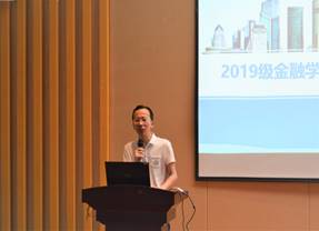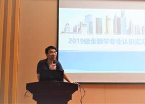 庞楷致欢迎词,他对专业认识实习的重要性做出强调,要求每个同学走出校门、学习企业、触摸社会,品味银行、保险、证券业“百态人生”,细数金融人“酸甜苦辣”,在假期中只争朝夕加油干。
