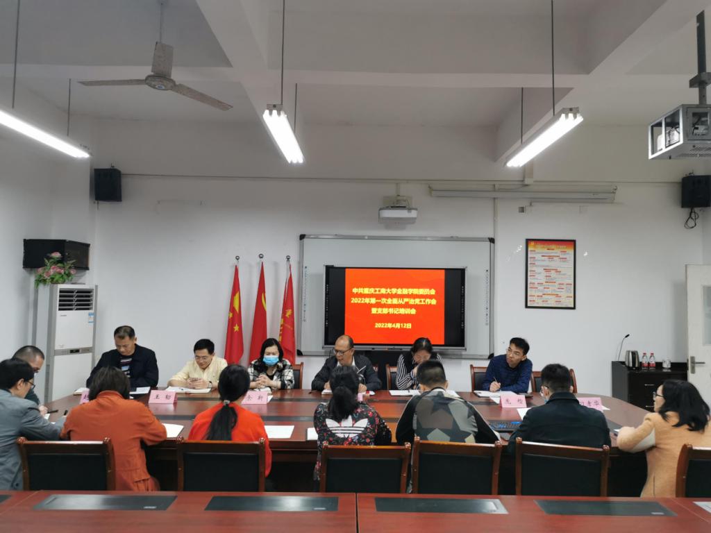 2022年4月12日上午,beat365英国官网网站党委在田家炳书院317会议室召开本年度第一次全面从严治党工作会暨党支部书记培训会,学院党委书记、副书记、党委委员、专职组织员、综合办主任、学团办主任及所属各支部书记等17人参加了会议,会议由学院党委书记、副院长王建明主持。