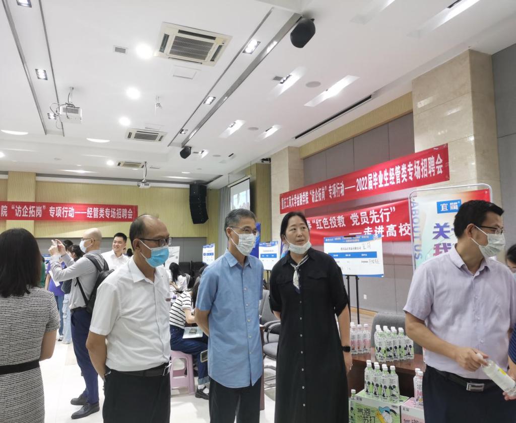 为拓展就业渠道,为毕业生搭建高质量、针对性强的就业平台,2022年6月7日上午,beat365英国官网网站在田家炳408报告厅举办“访企拓岗”专项行动——2022届毕业生经管类专场招聘会。校党委常委、副校长陈运超、招生就业处处长钟增胜、beat365英国官网网站全体院领导、学院就业联络员及毕业班辅导员到现场指导学生就业。