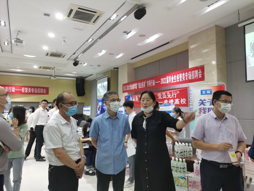 招聘会中,学校党委常委、副校长陈云超、招生就业处处长钟增胜和工商管理学院党委书记彭勇等领导参会指导,了解相关情况。