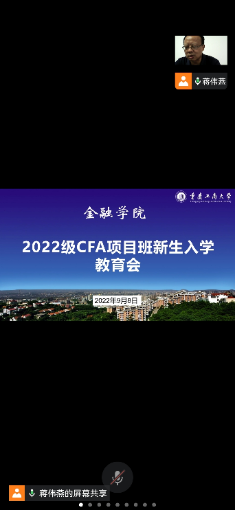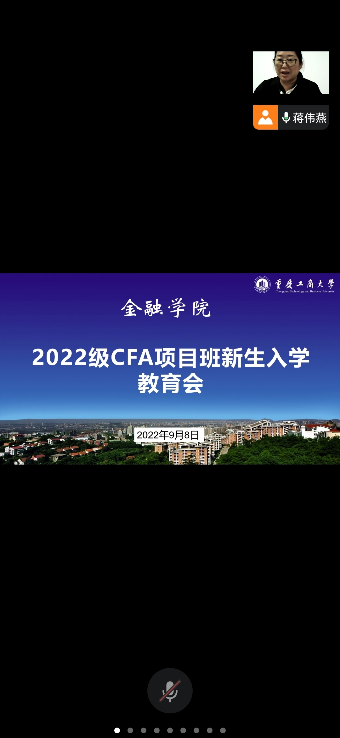 为引导大一新生合理做好大学学习生活规划,加强专业认识,更好地适应大学生活,9月8日下午,beat365英国官网网站党委书记石世明、院长王兰、党委副书记余新、投资系系主任魏琪于田家炳204办公室通过腾讯会议线上开展了2022级CFA特色项目班新生入学教育。入学教育由辅导员蒋伟燕老师主持。
