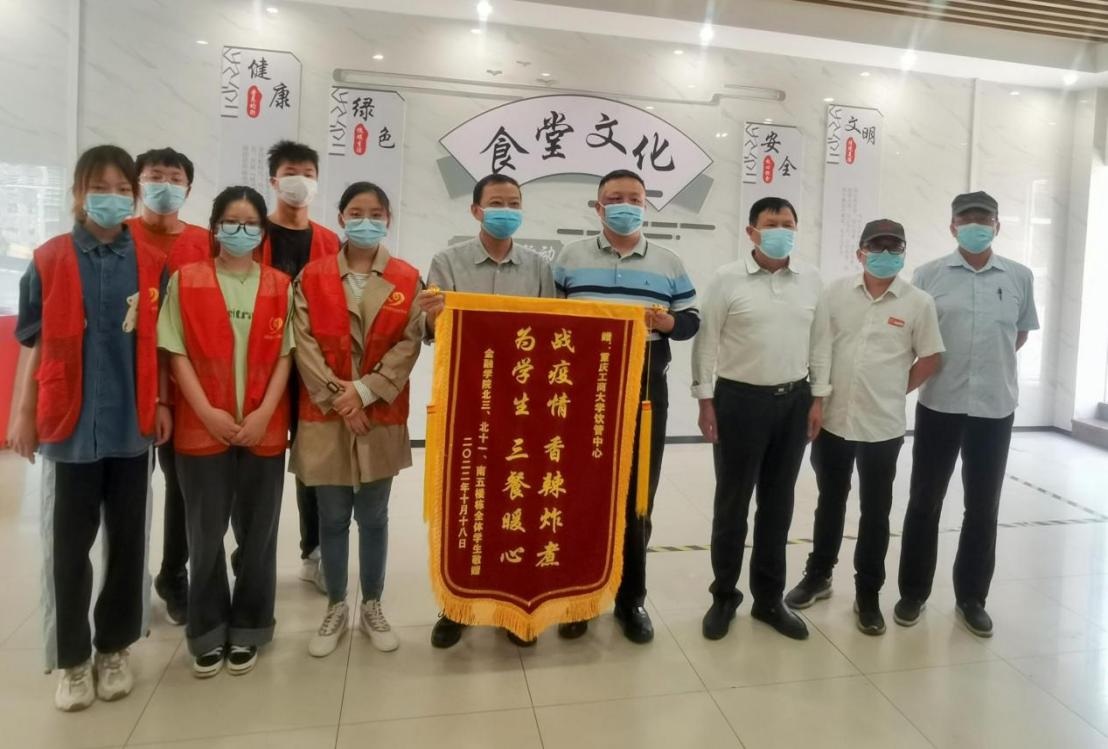 为感谢beat365英国官网网站饮管中心的全体食堂工作人员在疫情防控期间的辛勤付出,10月21日,beat365英国官网网站北三、北十一、南五楼管会代表三个楼栋的全体同学向饮管中心赠送锦旗,向全体食堂工作人员表达真挚的感谢,并致以崇高的敬意!