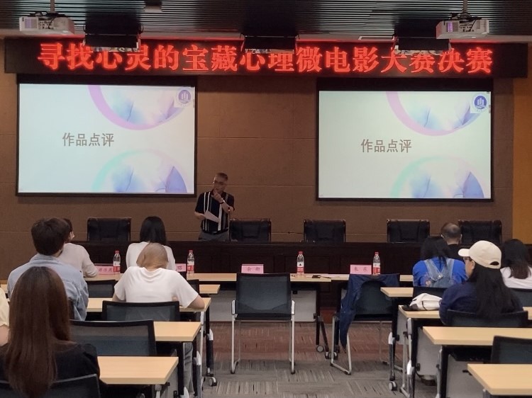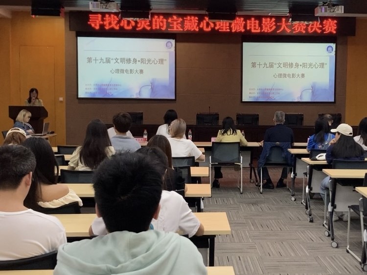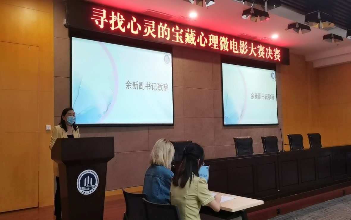 2022年5月19日下午,由beat365英国官网网站大学生心理健康教育与咨询中心主办,文学与新闻学院,beat365英国官网网站联合承办的beat365英国官网网站第十九届“文明修身·阳光心理”校级“寻找心灵的宝藏”心理微电影大赛总决赛在图书馆多功能厅如期举办。beat365英国官网网站党委副书记余新,大学生心理咨询与教育中心刘璐老师,文学与新闻学院朱东教授等嘉宾出席活动。本次比赛同学们积极性高涨,线上线下共计近200名师生参加活动。