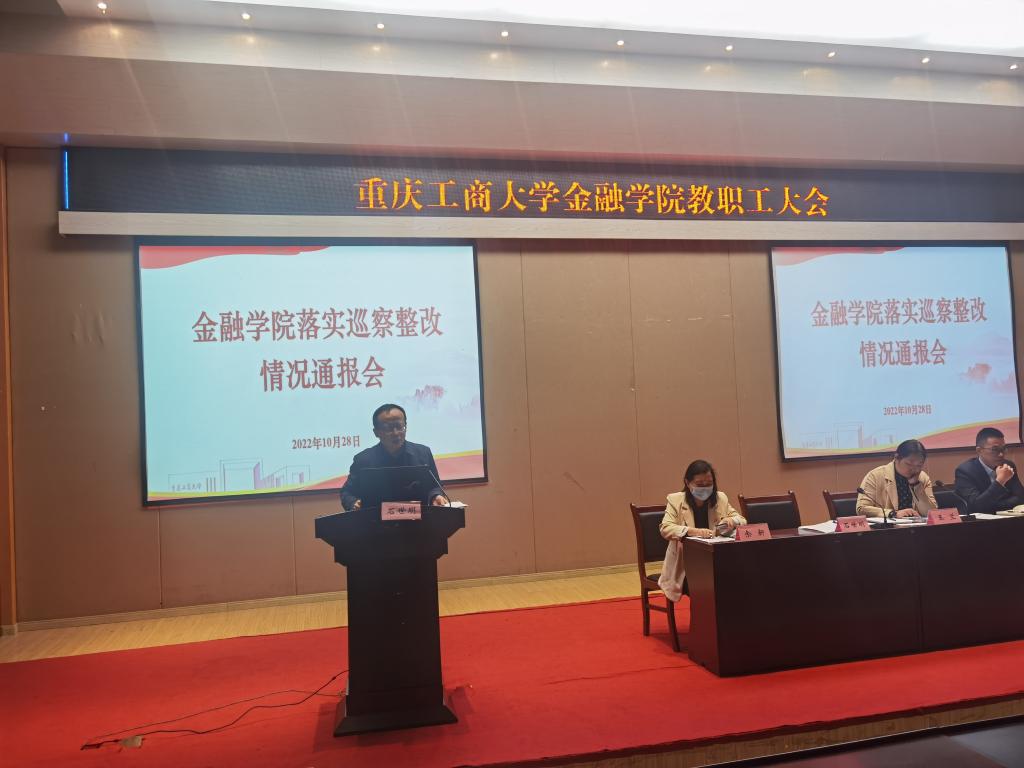 10月28日,beat365英国官网网站召开教职工大会,通报学院落实巡察反馈意见整改情况。学院全体干部职工参会,学院党委书记、副院长石世明同志主持会议。