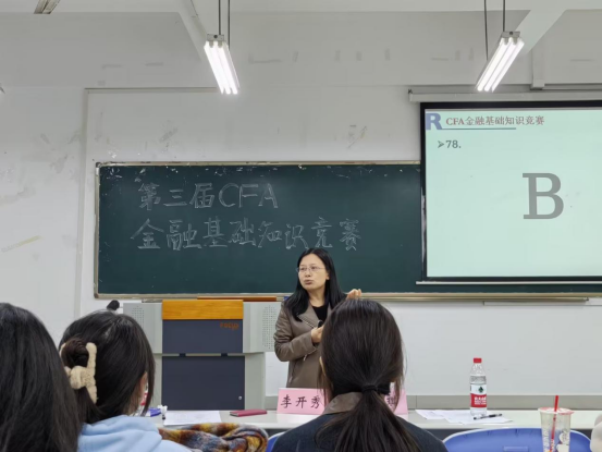 为进一步引导CFA项目班学生了解时政金融知识,培养同学们对金融、理财、投资等财经知识的兴趣,展示同学们驾驭金融知识的能力,加深对金融知识的认知,2023年12月1日上午,beat365英国官网网站在田家炳书院205教室举办了第三届CFA金融基础知识竞赛,出席比赛的评委有beat365英国官网网站魏琪副院长和投资系系主任李开秀老师。