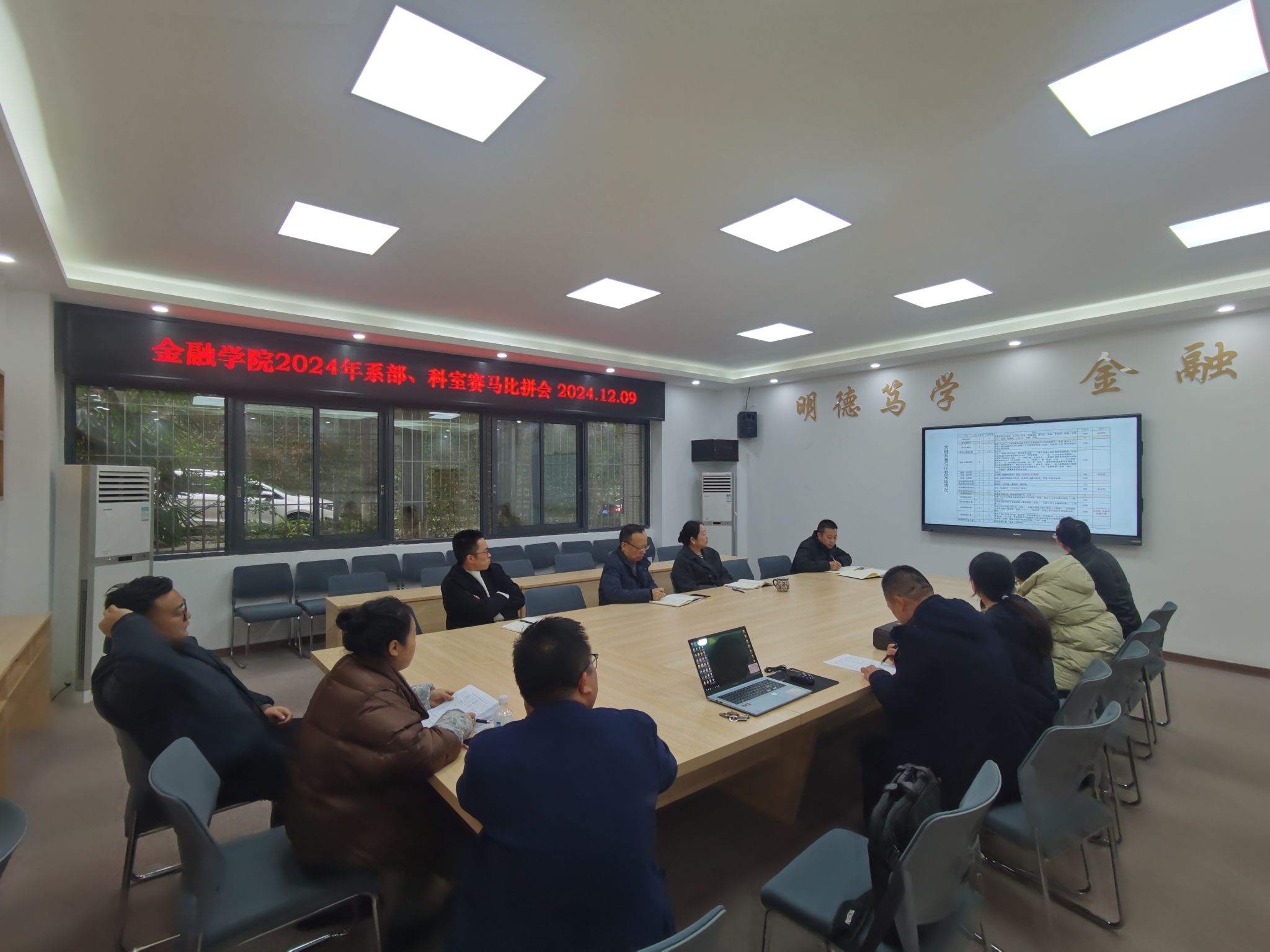 参会单位新金融研究中心、金融系、投资系、保险系、金工系、教务办、学团办、实验中心、教学督导组、综合办等先后以PPT的形式汇报了本年度目标任务完成情况,阐述工作亮点和特色、存在的问题和下一年度工作计划。各单位会上赛马比拼,相互找到了差距,激发了奋进的动力,受到大家的好评。王兰在总结时谈到,一是感谢大家一年的辛勤付出,对标对表去逐一落实各项工作,取得许多标志性成果,可喜可贺;二是感谢大家站在发展的角度,思考学院未来发展,相信beat365英国官网网站2025年更加美好;三是看到了大家的责任担当,这是学院发展的宝贵财富。希望各单位进一步解放思想、整合资源、借势借力,合力推动beat365英国官网网站快速发展。