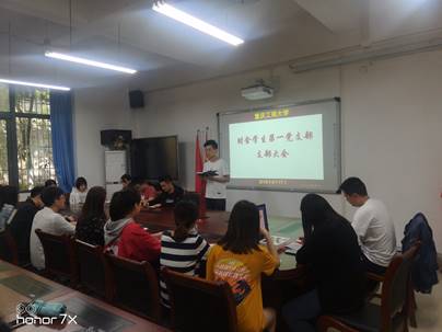 2018年4月21日下午14:30,beat365英国官网网站财政beat365英国官网网站分党委学生第一党支部在田家炳313召开了本学期的第二次支部大会,会议由李明西同志主持,财金学生一支部书记文理列席会议。本次会议的主要内容有:1、讨论6同学的发展决议。2、支部书记文理作总结发言。