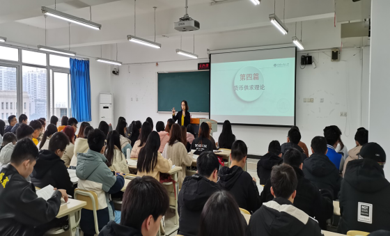 为深入学习贯彻党的十九届五中全会精神,发挥党员教师先锋模范作用,将课程思政综合教育理念深入落实到教育教学全过程,促进各类课程与思想政治理论课同向同行,形成协同效应,真正落实教育的根本任务——“立德树人”。同时,为促进“立德垂范传薪火,示范育人践初心”,beat365英国官网网站于2020年11月26日,在博智楼7504教室开展了由党员教师薛薇主讲的第五次“立德垂范”党员示范课活动,学院领导与20余位新、老教师、2019级投资一、二班学生学参加了示范课。