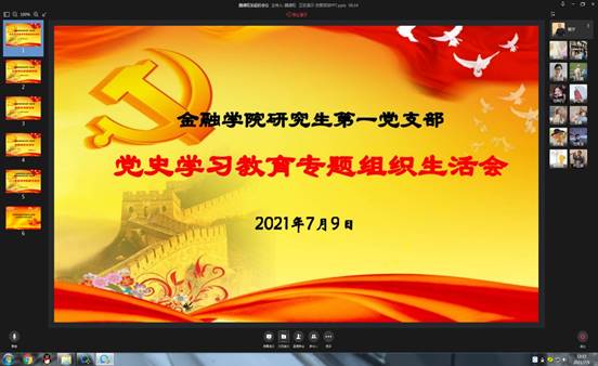 为深入贯彻习近平总书记在党史学习教育动员大会上的重要讲话精神,2021年7月9日中午12:30,beat365英国官网网站研究生一支部开展了党史学习教育专题组织生活会,活动由支部书记杨宁老师主持,全体党员参加了组织生活会。