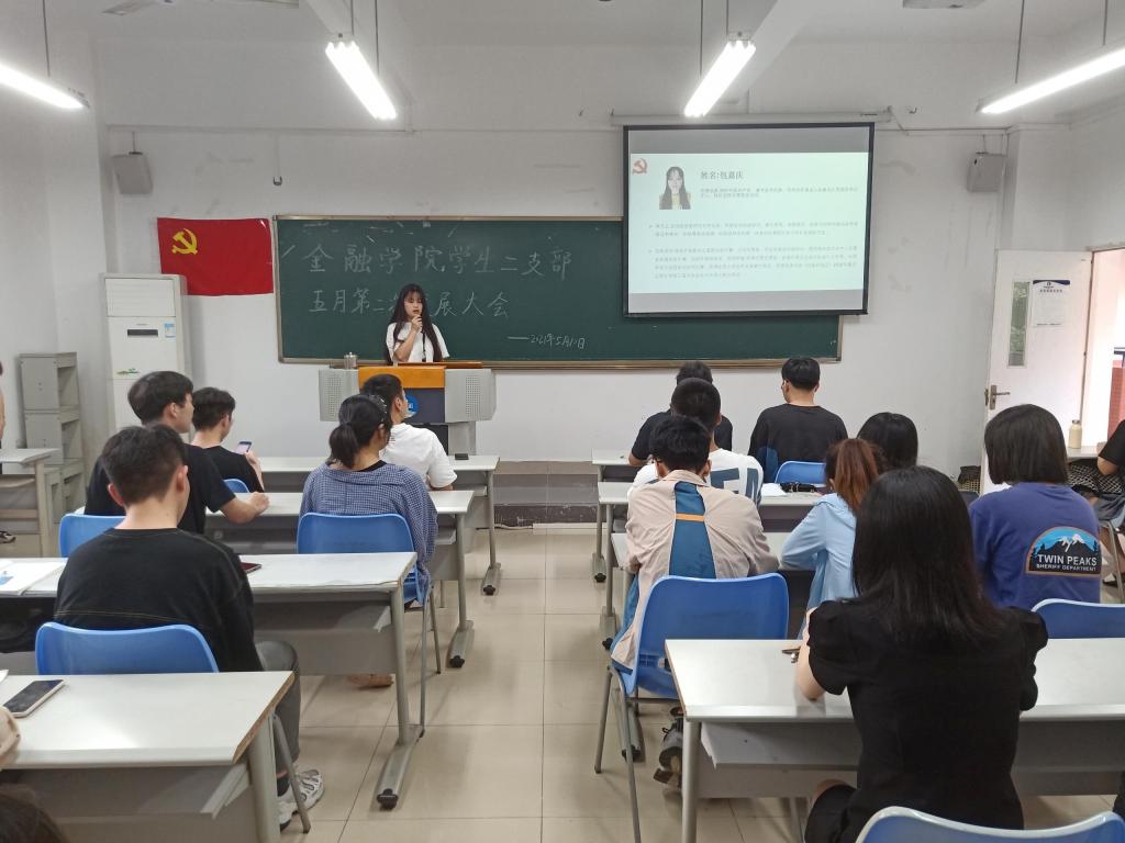 2021年5月10日周一下午6点,beat365英国官网网站beat365英国官网网站分党委学生第二党支部于田家炳307召开了第二次五月发展党员支部大会。本次发展大会由朱钰婷同志主持,学生第二党支部书记乔明月、金融二支部全体学生党员、发展对象以及学生代表参加本次活动。本次大会主要发展杨清、陶利霞、刘世平、钟欣艺、尚飒、刘豪、包嘉庆以及杜汪钰八位同志为预备党员。