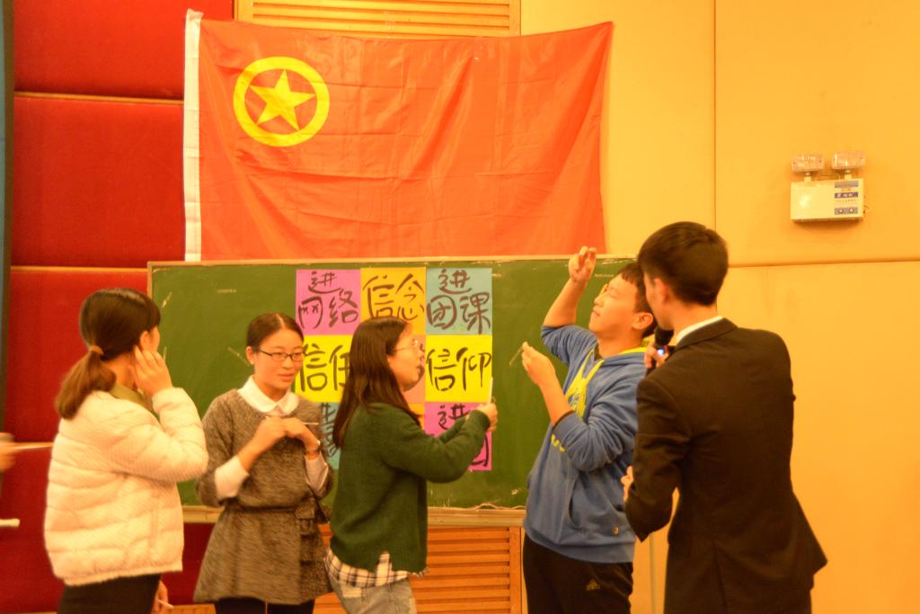 作为校十佳精品团日活动,此次活动以“一位旅行者的中国梦主题旅游路线”为轴,从政治、经济、文化、社会、生态这五个版块带领同学们领略中国梦内涵。第一站—beat365英国官网网站,通过小品表演,幽默诙谐地展示了当代大学生敢想敢干的创业精神;第二站—重庆江北嘴,现场模拟《一站到底》进行激烈的财经知识竞答来鼓励大学生们学以致用,为社会创造价值;第三站—国家政治之都北京,以现场互动的方式普及热门政治词“四进四信”;第四站—魅力之地上海,感触活色生香的中国传统文化,将书、画、礼、乐四种文化之美融合为一,呈现出清素典雅的中国风;第五站—心灵之境西藏,净地的天高云淡与城市的雾霾满天形成鲜明对比,“财金名嘴奇葩说”关注生态问题,以语言交锋辩论“经济发展与环境保护能否并行”,呼吁共同建设绿色中国。春活力的表演与活动在带给大家欢乐的同时,也诠释了属于大学生的“中国梦”信念。活动最后,刘书记发表总结致辞,指出中国梦与现实生活的必然联系,倡导“五个自信”共同助力中国梦。