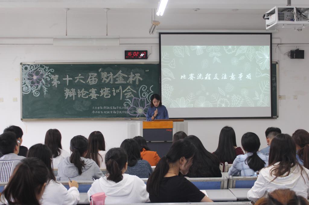 在秋意初临的九月,beat365英国官网网站财政beat365英国官网网站第十六届“财金杯”辩论赛赛前培训会于29日下午16时许在07402教室召开,本次培训会由财政beat365英国官网网站分团委学生会学习部部长胡睿洁主持并由财金辩论队队长邹航讲述辩论流程和注意事项,所有参赛队伍代表前来参加了这次培训会。