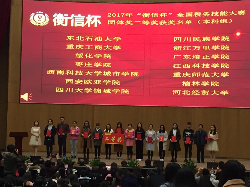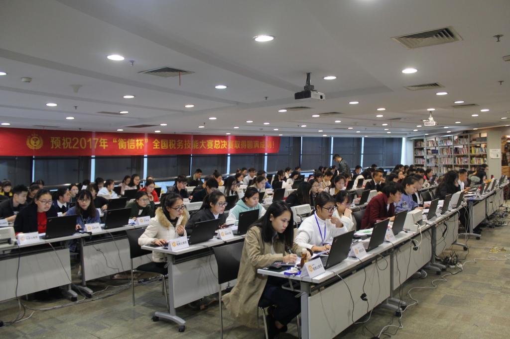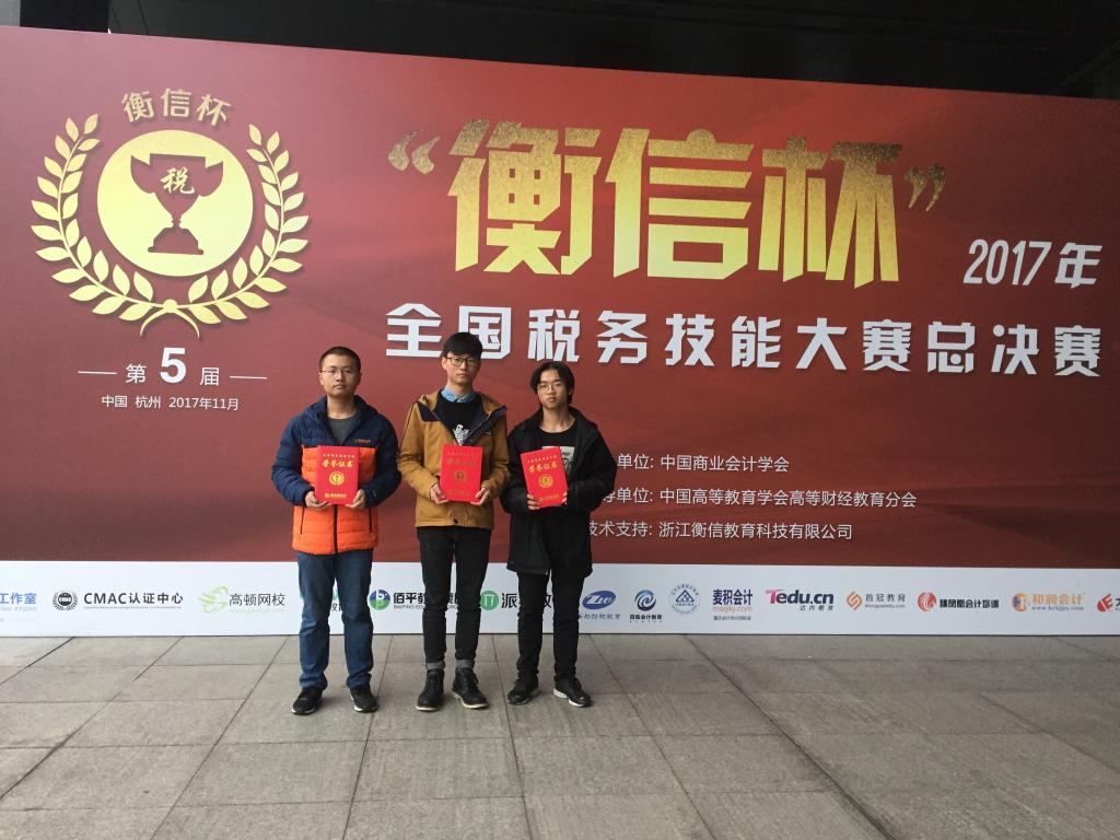 2017年11月28日下午,财金学院学生李东东、李大为、冉健宏代表beat365官网前往杭州参加2017年“衡信杯”全国税务技能大赛总决赛。