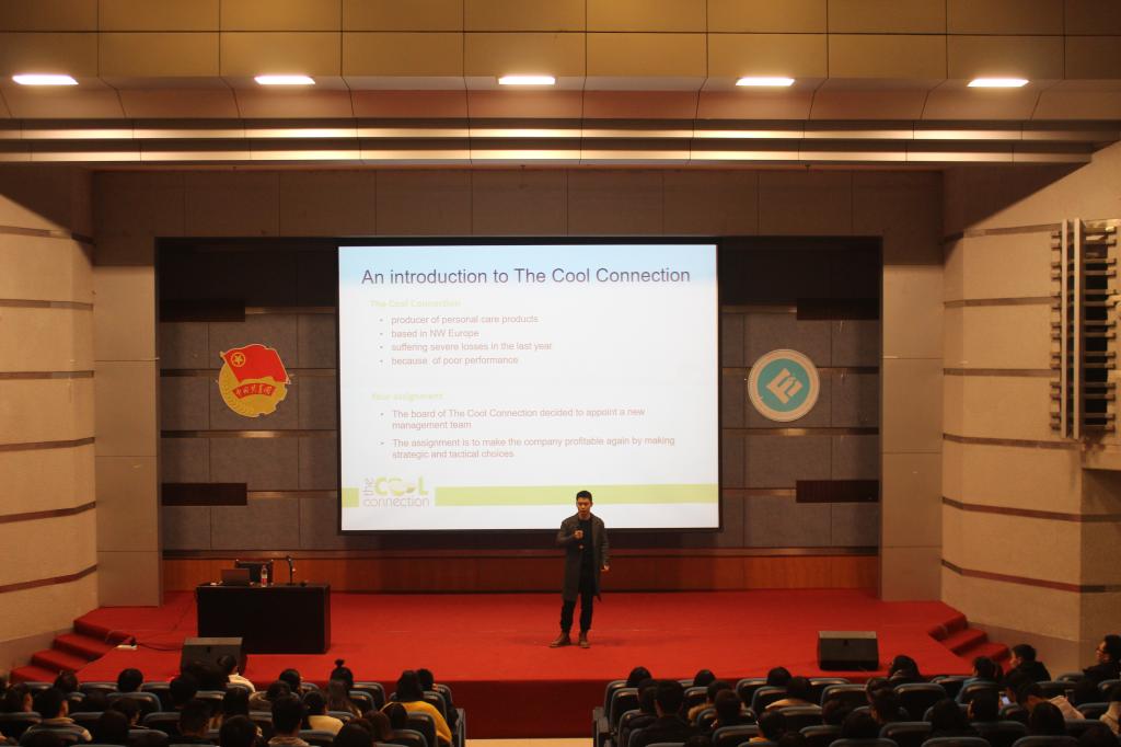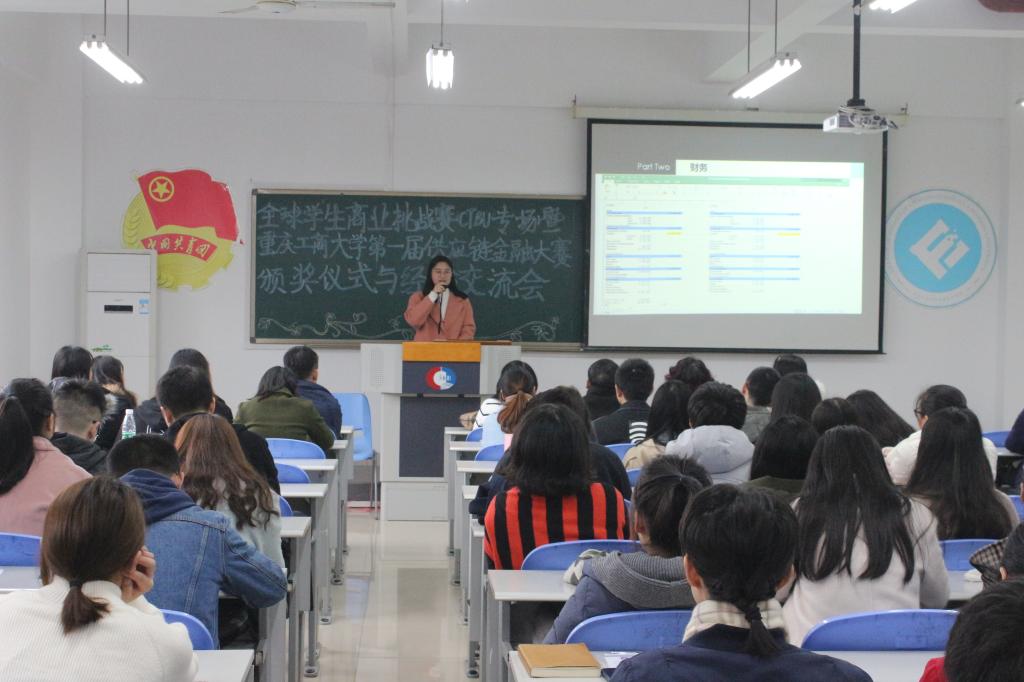 大赛开幕仪式于2017年12月2日beat365英国官网网站博智楼7100顺利举行,为帮助同学们了解此次比赛,徐玫老师及高静凯学长在开幕式后为大家进行了赛前培训,培训分为上下午两场,共139组参赛队伍参与其中。12月3日至7日为初赛阶段,由全体参赛队伍线下分散进行。此轮比拼后,前30支队伍晋级半决赛。12月8日下午,半决赛与决赛于旧图书馆四楼重庆智能金融实验与实践中心正式拉开帷幕,来自各个专业的三十支优秀队伍在此进行最后角逐。正所谓单丝不成线,独木不成林,参加比赛的各支队伍通力合作,各队队员积极讨论,为团队决策出谋划策。最终,前六强也在决赛中产生。12月12日,大赛表彰大会拉开帷幕。来自本次大赛三十强的六支队伍代表分别从整体策略、各部门策略以及参赛时的时间把控等方面向与会人员分享了他们参加此次大赛的经验与感受。随后,刁孝华院长做总结讲话。大会最后为我们揭开了优胜者的神秘面纱,25号队、106号队以及116号队获得了本次大赛的三等奖,15号队和130号队获得二等奖,而一等奖则由38号队伍获得,同时他们也获得了直通荷兰与全球学生同台竞技的机会。希望他们能继续努力,在全球舞台上展现工商学子的风采。