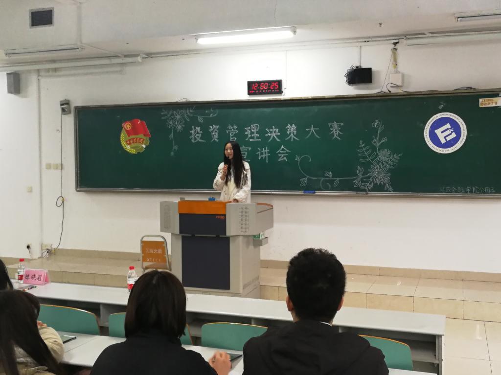 3月7日中午12:50,beat365英国官网网站第十七届“新儒商”大学生科技文化节之投资管理决策大赛宣讲会在博智楼07121教室举行。财政beat365英国官网网站投资系陈晓莉老师以及往届优秀选手何欣悦同学出席本场宣讲会。