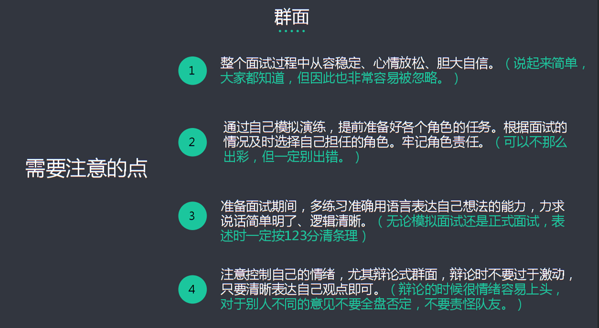 董善雷学长根据他多个大银行的面试实习经验,跟我们详细介绍了银行招聘面试的整个流程和群面、半结构化面试中需要注意哪些细节,最后为我们推荐了相关招聘面试较好的平台。