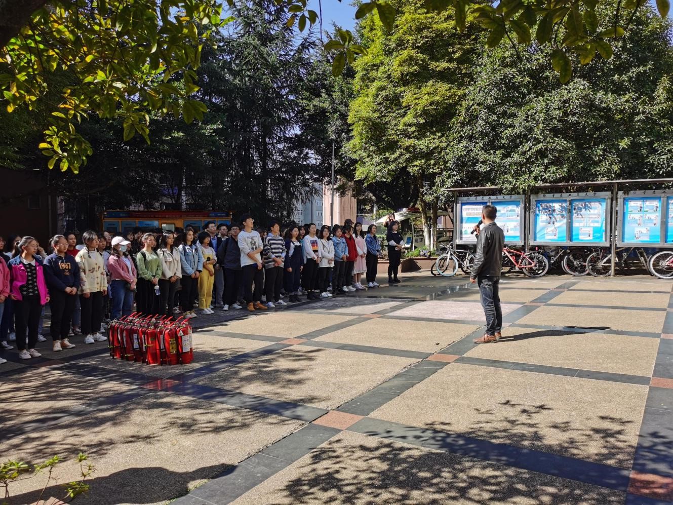 (图为保卫处副处长王树坤老师为学生宣讲消防知识)
