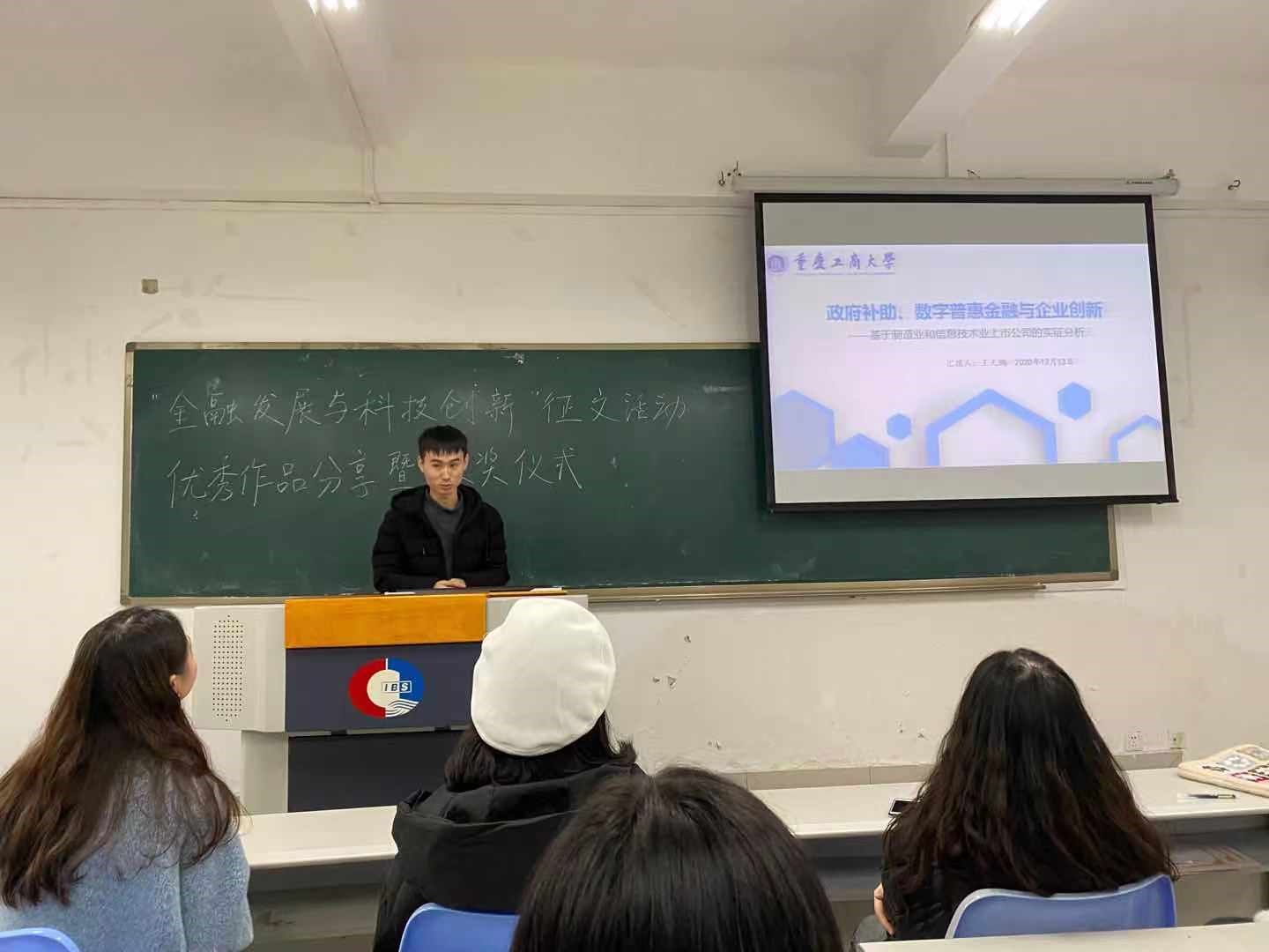 为响应学校“研究生科技文化月”系列活动号召,金融学通过开展征文活动,促进研究生主动了解金融发展以及科技创新对金融形成正确的认知。beat365英国官网网站beat365英国官网网站研分会在2020年12月13日下午3:00于田家炳308教室举办了“金融发展与科技创新”征文活动颁奖仪式。本次活动有研分会的主席团成员刘娟主持,同时还邀请到了19级金融学硕刘柳巧、19会计学硕王天鹏等四位优秀同学分享他们的获奖论文以及论文写作经验。