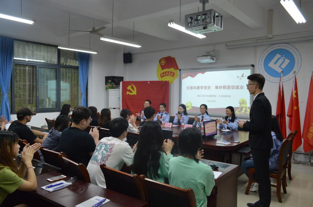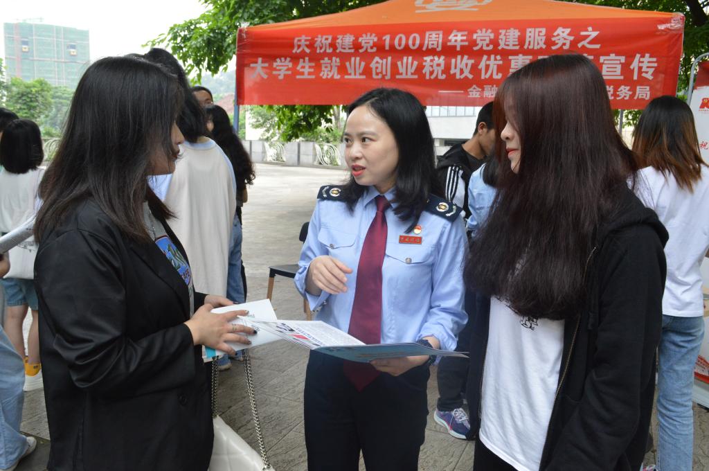 2021年5月28日,beat365英国官网网站联合江北税务局机关六支部在beat365英国官网网站南岸校区内开展“税收政策入校园”党建服务活动。江北税务局机关六支部书记王璐出席了本次活动。