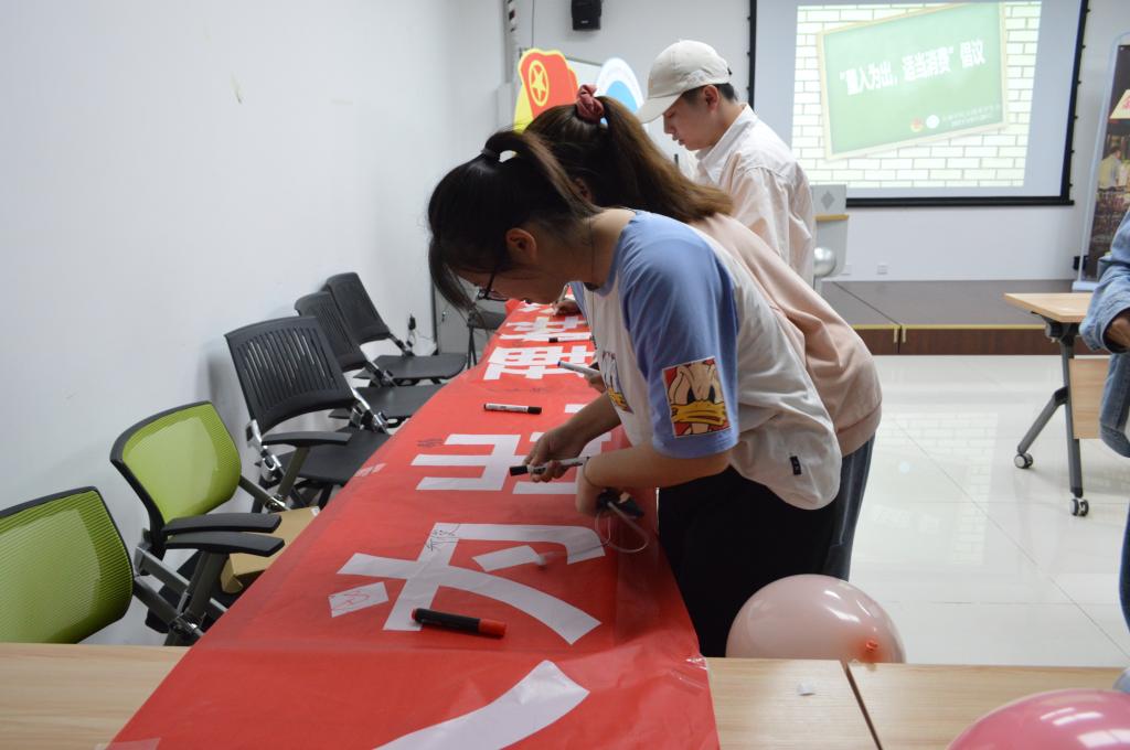 演出期间,主持人通过知识问答、分发问卷的方式向同学们传播消费知识。演出结束后,同学们分享身边发生的案例,提到了二手买卖脱离平台交易被骗、淘宝退款链接被骗、微信QQ被盗要求转钱被骗等。最后,beat365英国官网网站分团委(学生)副书记田凯玉对活动进行了总结,再次普及金融防诈骗知识,同时倡导同学们量入为出,理性消费。活动结束后,同学们在横幅上签字响应正确消费的号召。
