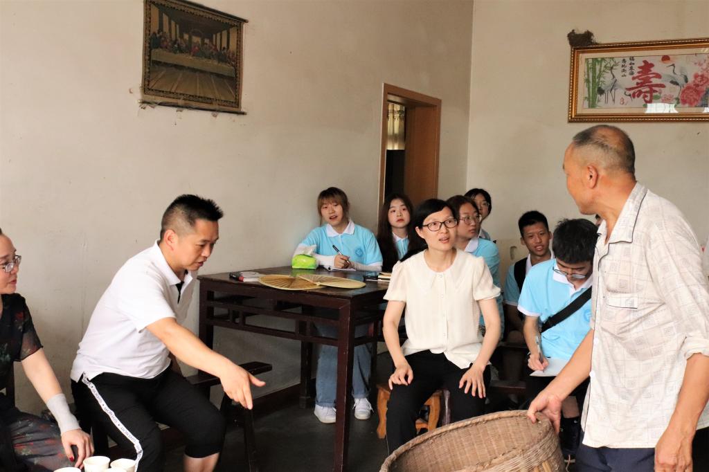 箩篼湾村民为实践团讲解箩篼精神