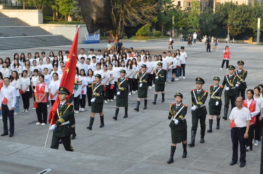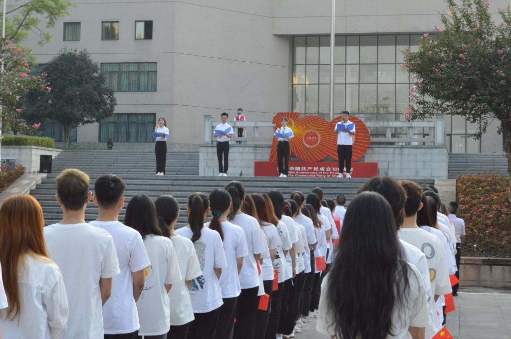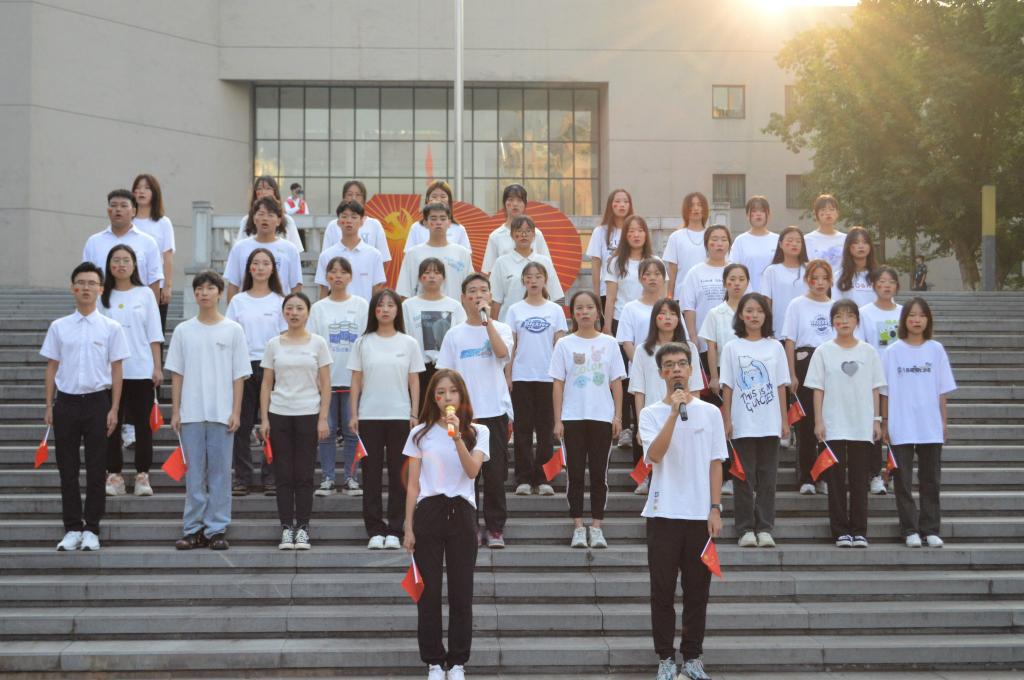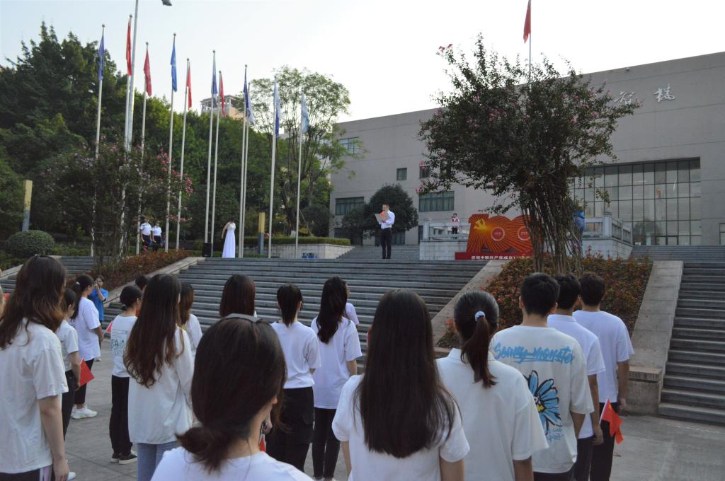 金秋十月,丹桂飘香。为热烈庆祝中华人民共和国成立72周年,弘扬党的光荣传统、赓续红色血脉,2021年10月1日上午8:00,beat365英国官网网站于含弘广场隆重举行“百年峥嵘照初心 七秩风雨薪火传”国庆升旗仪式。beat365英国官网网站党委常委、宣传部部长华杰,党委学工部部长、学生处处长申卫东,beat365英国官网网站党委书记、副院长王建明,beat365英国官网网站党委副书记、纪委书记余新,beat365英国官网网站学工办副主任、分团委副书记兰丽娟及beat365英国官网网站党员服务站指导老师范乐乐莅临本次升旗仪式。