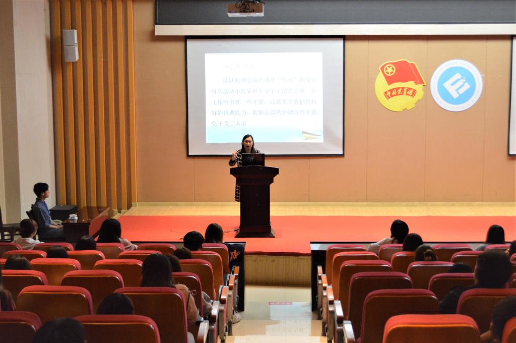 余新副书记首先以学生干部应具备的四项素质即政治素质、知识素质、能力素质、心理素质展开讲解,分析学生干部应具有的八大能力,同时结合习近平总书记对青年的寄语向同学们进行详细解读。她强调,作为学生干部,应该是从同学中来到同学中去,更应具备“五有:有信念、有纪律、有品行、有服务、有作为”;“五性:预见性、计划性、时效性、主动性、积极性、创造性”;“五高:高标准、高要求、高质量、高效率、高速度”;“五心:信心、真心、虚心、耐心、细心”,由点到面,由外至内,有条有理,真正做到使同学们学有所获。未来属于青年,希望寄予青年。余书记鼓励同学们,要做到“心中有阳光,脚下有力量”,为理想而坚持不懈,才能创造无愧于时代的人生。