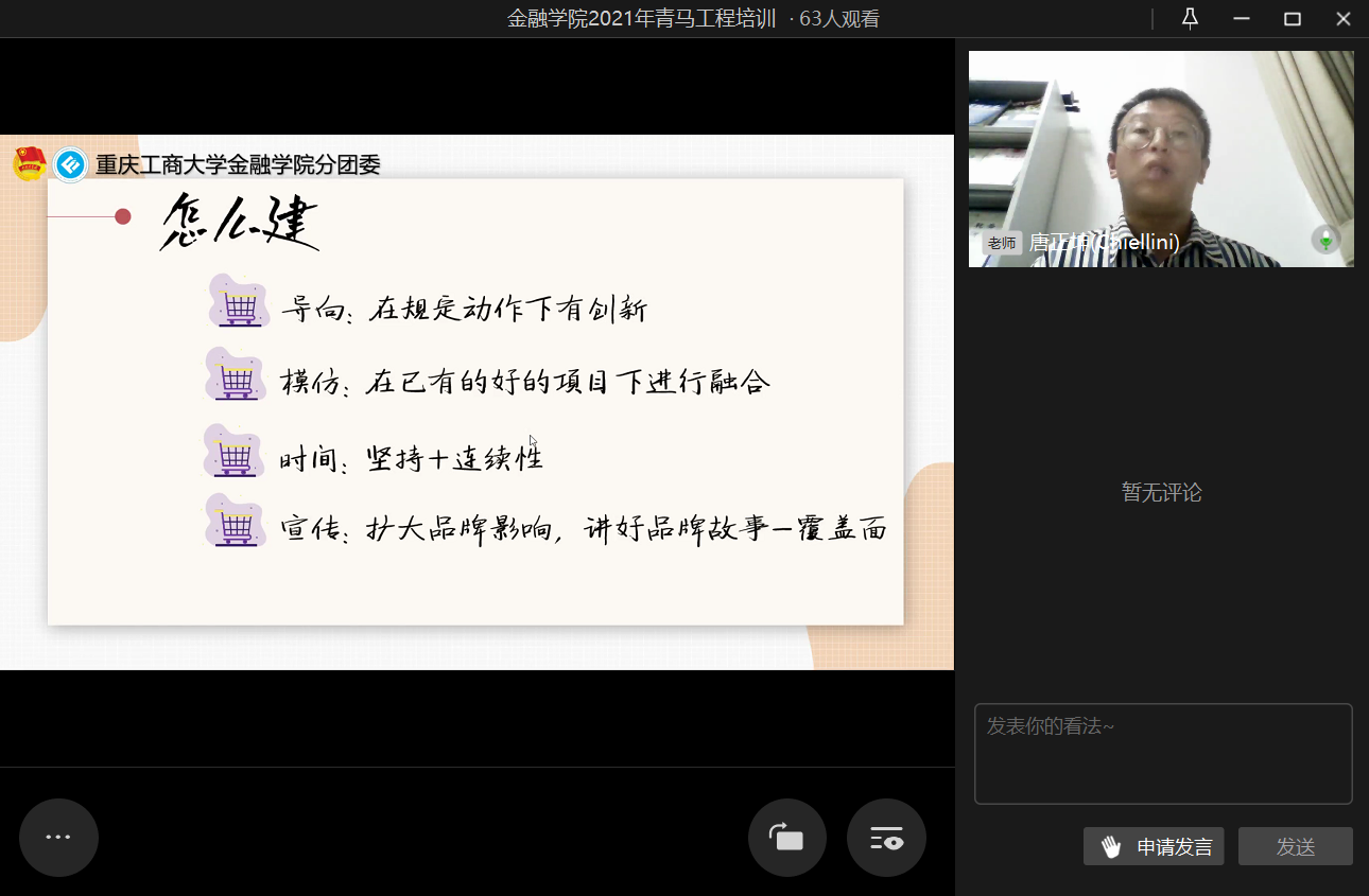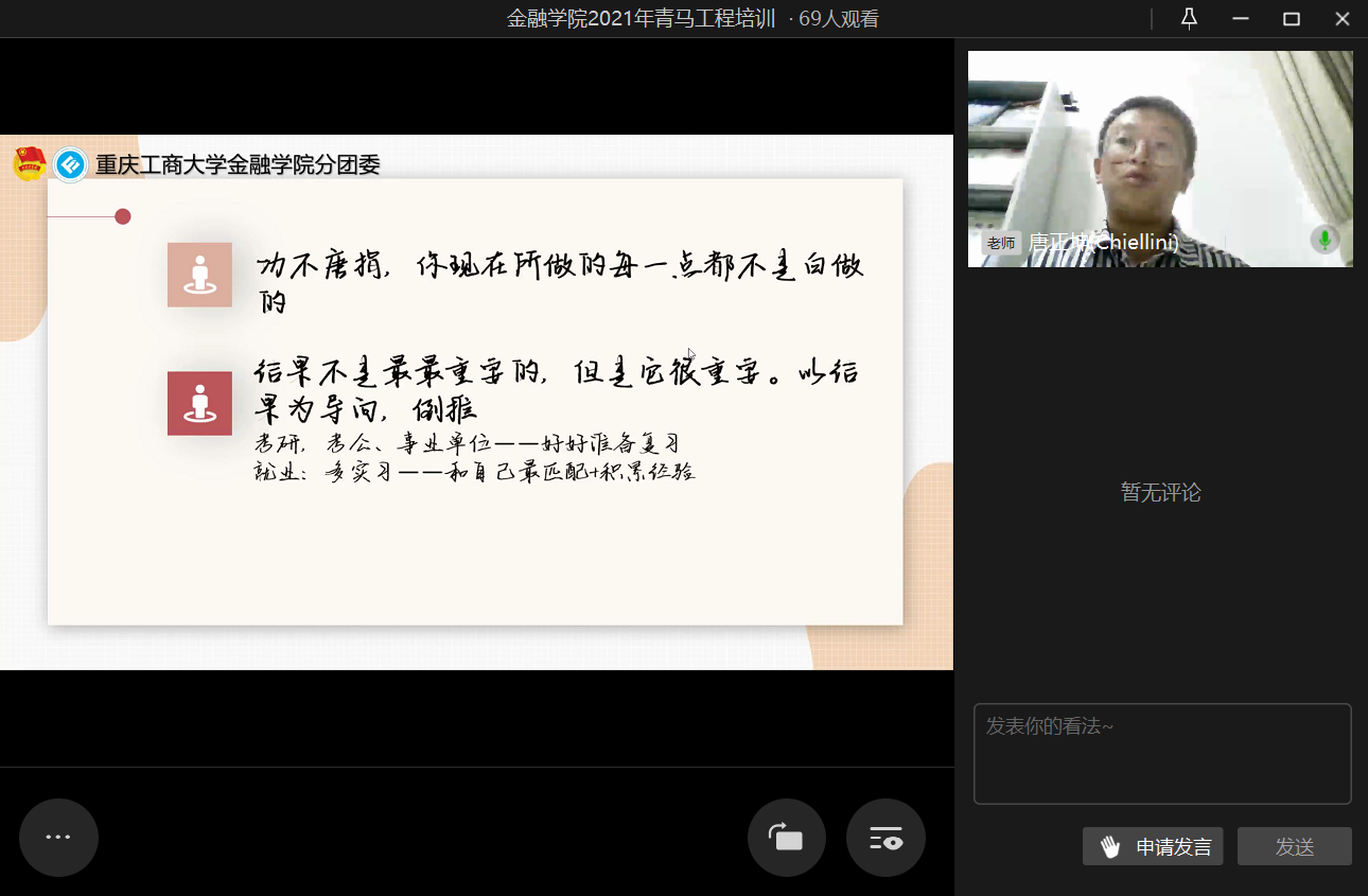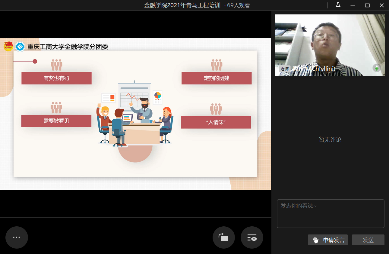 为进一步提高团干部的实践能力和组织协调能力,2021年10月20日21时,beat365英国官网网站第二期青马工程培训之“汲取宝贵经验,赓续前行力量”于企业微信线上直播顺利举行。