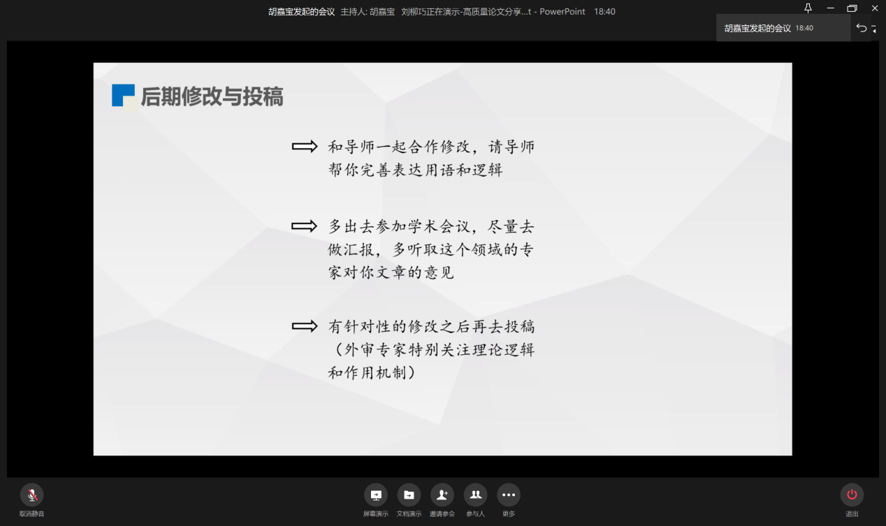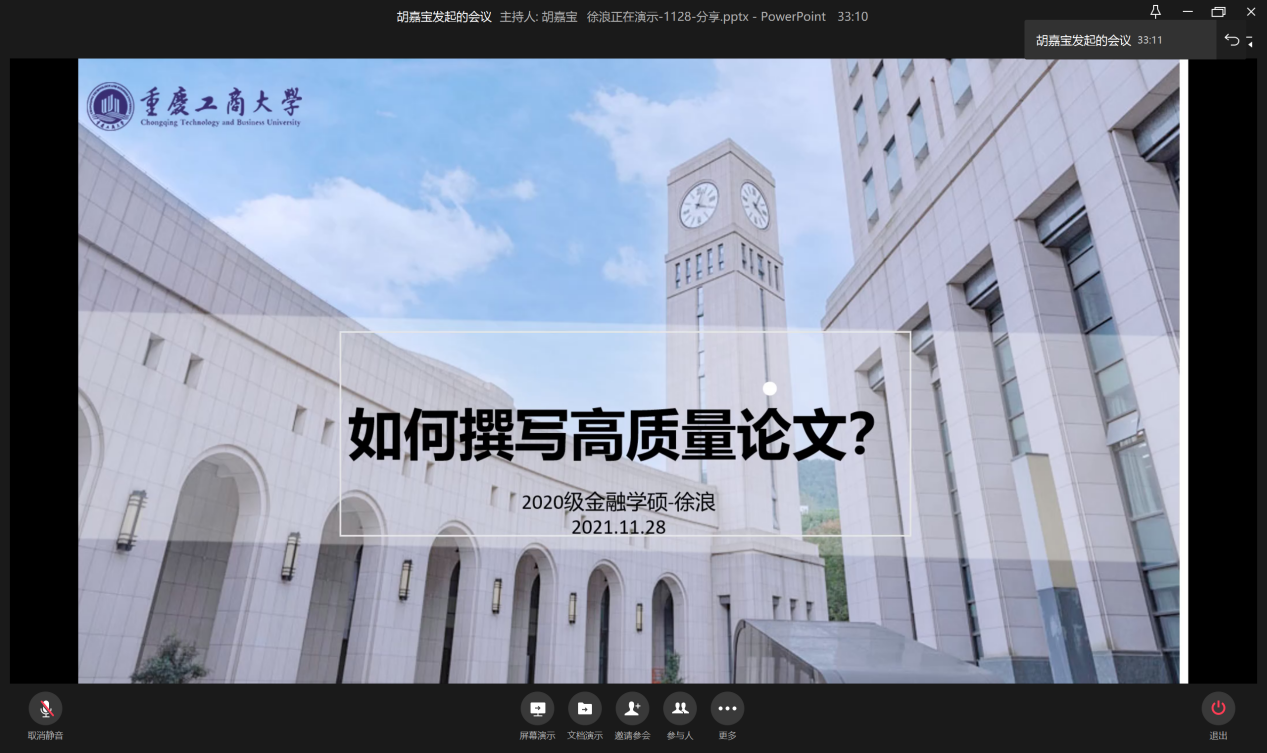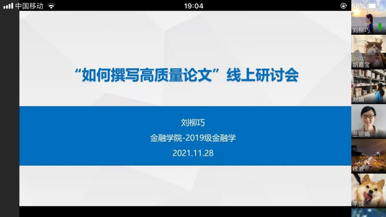 11月28日晚19:00,为提升学生论文撰写水平,营造良好的学术氛围,beat365英国官网网站研分会在企业微信线上举行“如何撰写高质量论文”分享会。