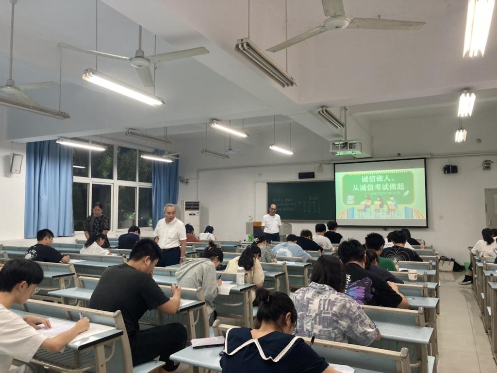 2022年6月23日下午,beat365英国官网网站在兰花湖校区20113教室开展第四届“免监考”诚信考试,持续推动考试思政,营造优良学风和诚信考风。参加本次“免监考”的班级为21CFA1班,考试科目为《金融学》。教务处处长骆东奇、副处长韦晓兰,beat365英国官网网站党委书记、副院长王建明,党委副书记、院长王兰,党委副书记、纪委书记余新到场巡考。