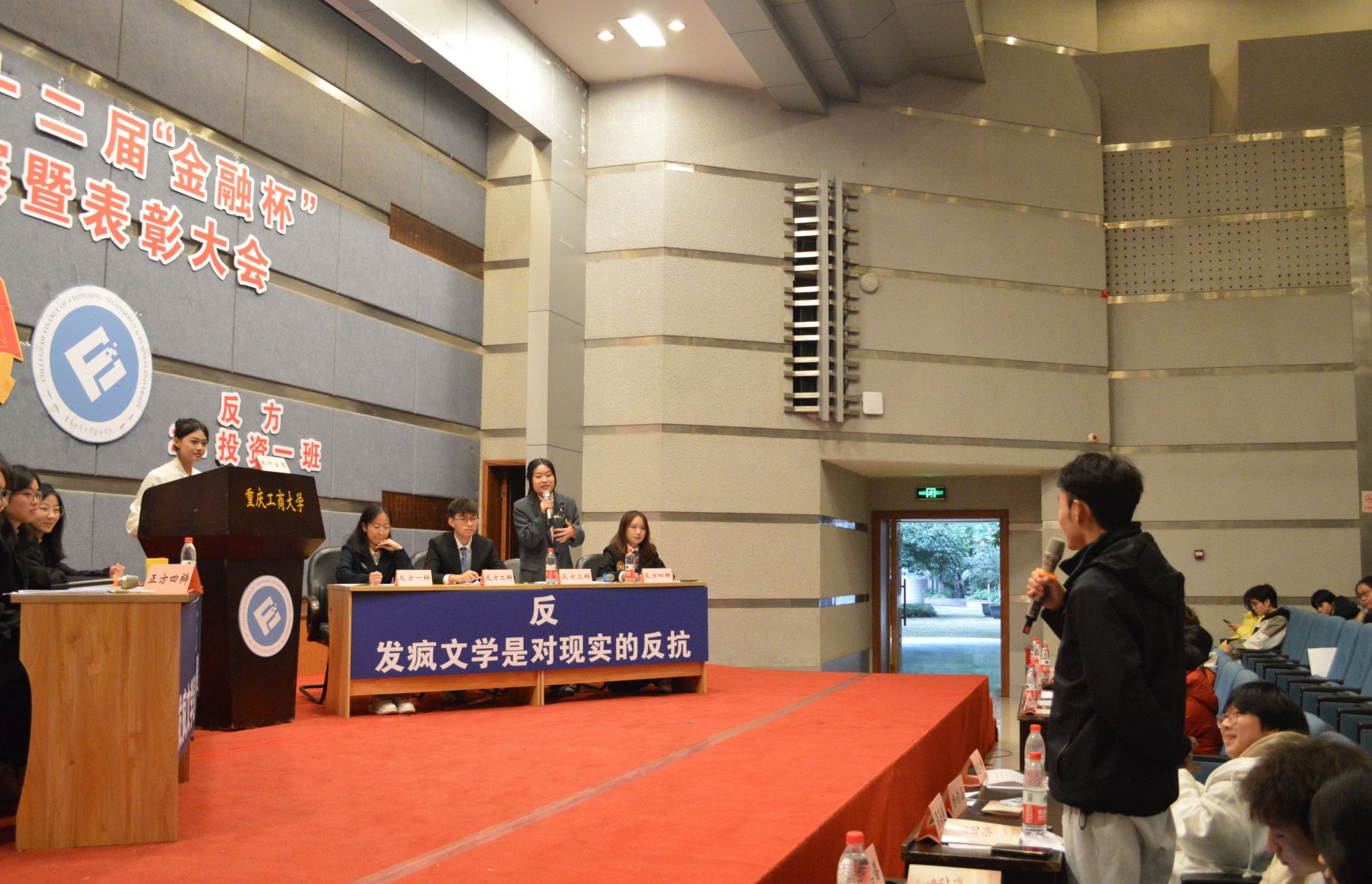 为了增强观众体验感,beat365英国官网网站2023级辩论队为大家带来了以“发疯文学是对现实的逃避还是对现实的反抗”为辩题的辩论表演赛,同样精彩绝伦,引得观众拍手叫好!最后,大会对优秀辩手和获奖队伍给予表彰并颁发奖状。
