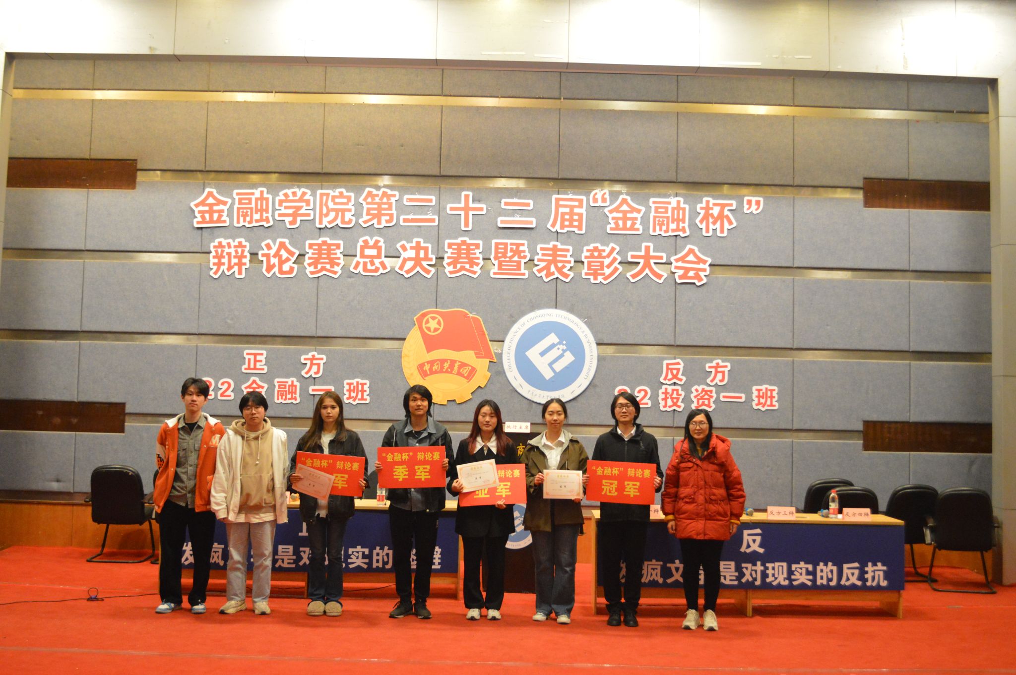 2023年12月2日下午,beat365英国官网网站第二十二届“金融杯”辩论赛总决赛暨表彰大会在博智楼7100报告厅顺利举行。beat365英国官网网站学工办主任、分团委书记兰丽娟老师出席了本次活动。经过激烈的角逐,22金融一班和22投资一班成功突出重围来到总决赛的现场。