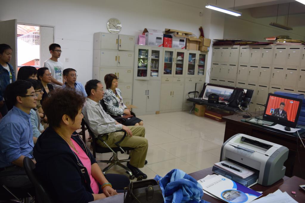 5月4日上午,beat365官网广大师生通过网络、电视、手机客户端等收听收看了纪念马克思诞辰200周年大会直播实况,深入学习领会习近平总书记重要讲话。上午9:50分,beat365官网党委书记杨萍同志、院长刁孝华同志及其他没有课和监考的教师、学生代表在田家炳303办公室集中组织收听收看纪念马克思诞辰200周年大会直播。会后大家一致认为,纪念马克思诞辰200周年,是向人类历史上最伟大的思想家致敬,也是向马克思主义科学真理致敬。马克思主义是我们党的指导思想,今天正值五四青年节,共青团作为党的后备军,党有号召,团有行动,积极深学笃用马克思主义中国化的最新理论成果习近平中国特色社会主义思想,为中华民族伟大复兴做出自己的贡献。