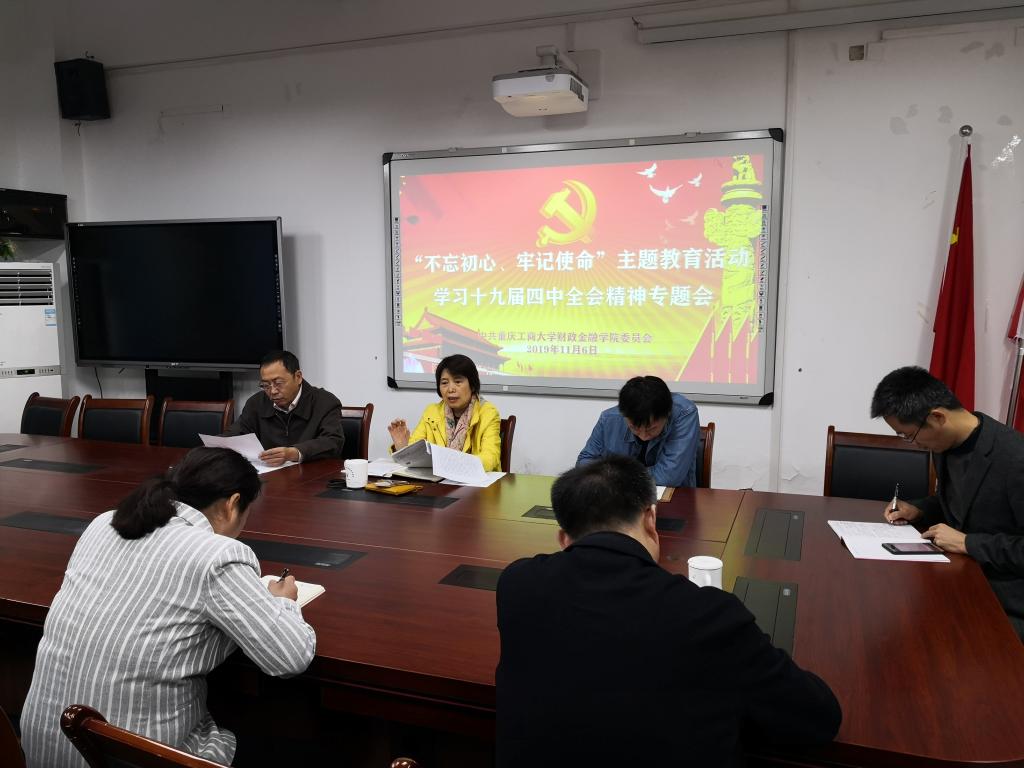 11月6日,财政beat365英国官网网站党委召开专题会贯彻学习领会十九届四中全会精神。会议由党委书记杨萍主持,班子全体成员参加了学习。