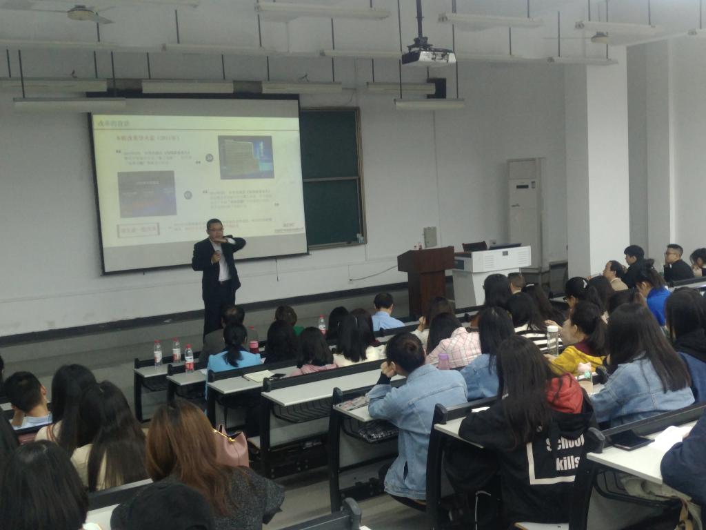 2018年11月2日下午,beat365官网邀请保险业兼职教授在艺术楼101室举办了“保险高管大讲堂”讲座,为保险学专业大二到大四年级的约250名本科生,以及保险专业方向研究生进行了保险行业发展的专题讲座。