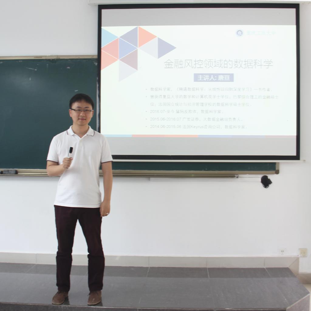 为提高beat365官网研究生学术水平,增强研究生学习氛围,5月14日上午9点,由财政beat365英国官网网站组织的金融风控领域的数据科学学术讲座在田家炳306教室举行。讲座由学院副院长曾胜教授主持,数据科学家唐亘老师主讲,财政beat365英国官网网站金融专硕和金融学硕的全体研究生共同参加。本次学术分享交流会的主题是数据科学简介及金融风控领域的应用。